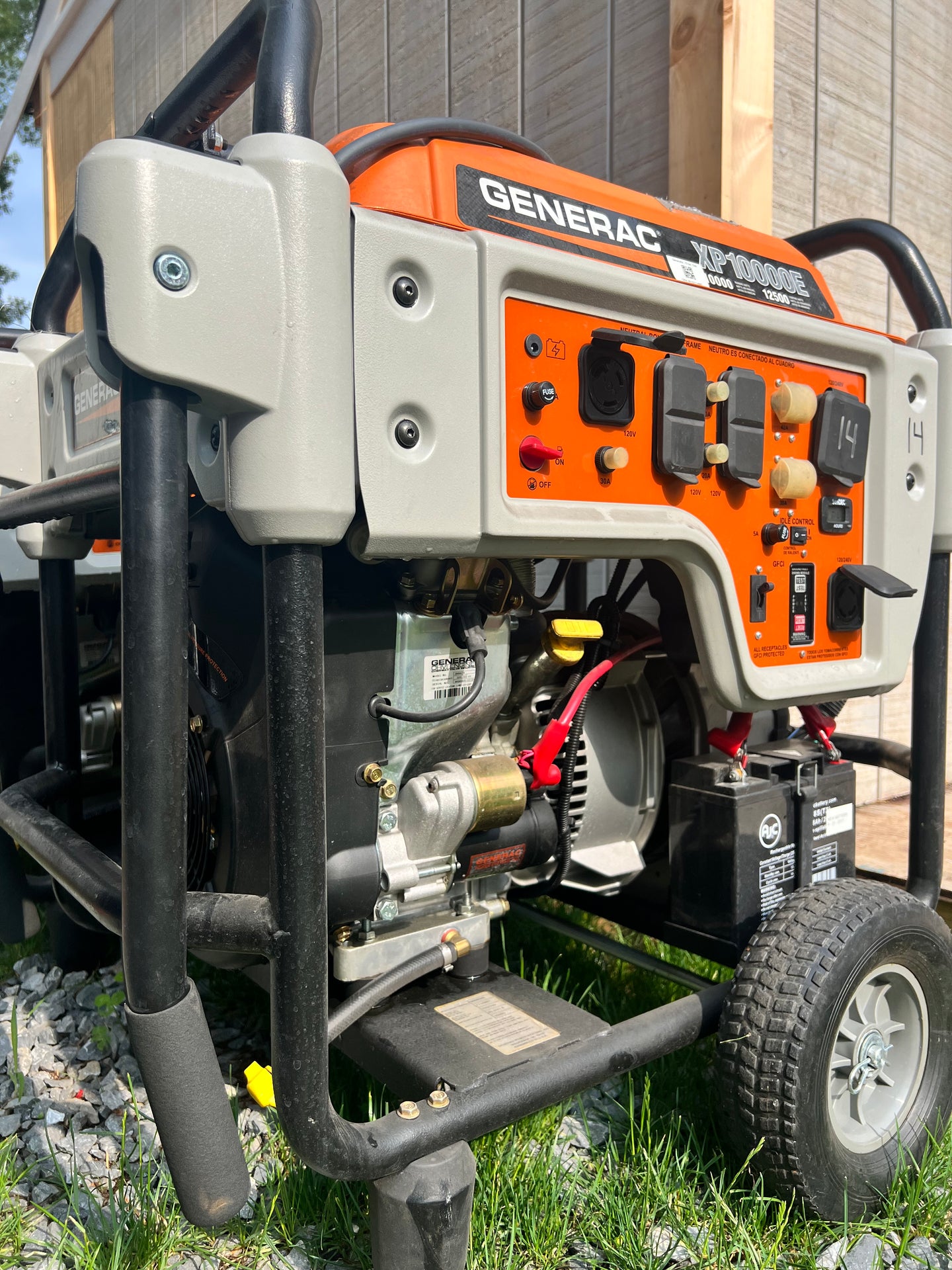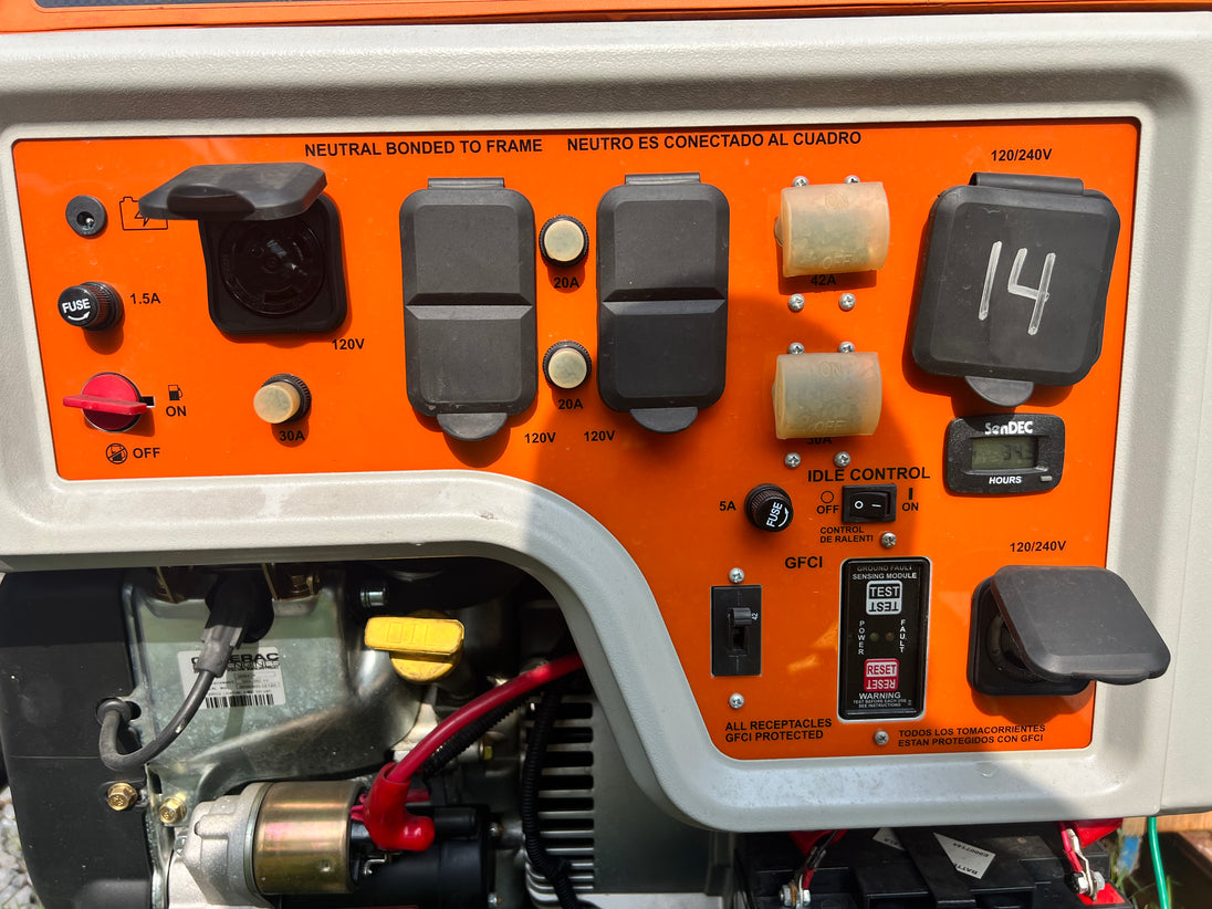 GENERAC Commercial Generator Model XP1000E # 5932. 12,500 Starting watts! 10kW 10,000 continuous watts. This unit supports 120/240V. Ideal for construction, contractors, emergency personnel, municipalities or even roadside emergency workers needed to recharge EVs.